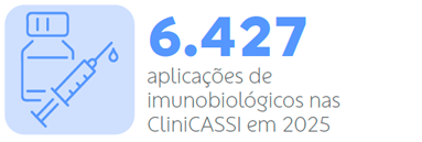 Em 2025, passamos a realizar aplicação de imunobiológicos em mais cinco CliniCASSI: Aflitos, em Recife (PE), Curitiba (PR), Jabaquara, em São Paulo (SP), São Luís (MA) e Fortaleza (CE). Com isso, ampliamos para oito a quantidade de localidades que oferecem esse procedimento. O serviço já está disponível também nas CliniCASSI Brasília (DF) e em duas da capital fluminense, Tijuca e Copacabana (RJ).